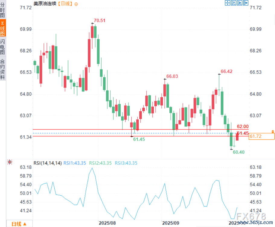 下行方面,若油价跌破9月创下的数月低点61.50-61.30好意思元区间,将为更深档次的着落翻开空间。随后油价可能加快跌破61.00好意思元关隘,下探60.40-60.30好意思元的中间复古位,并最终考验5月下旬低点60.00好意思元款式关隘。